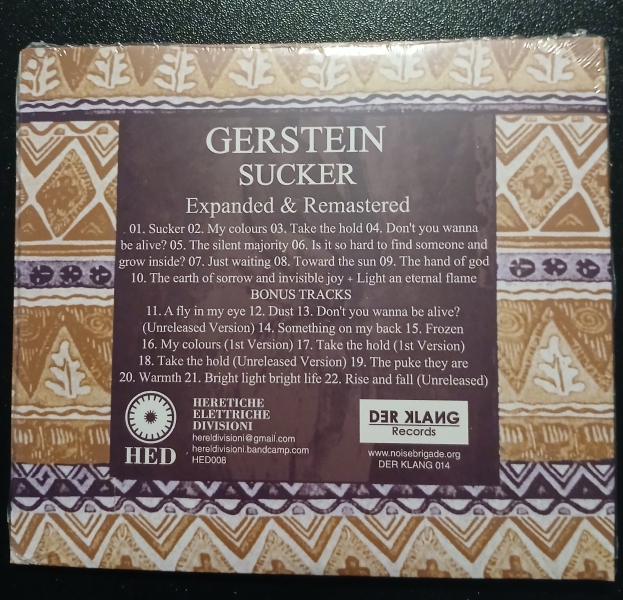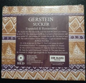 Reprint of GERSTEIN's iconic album "Sucker" first out in 1993 on MISTY CIRCLE (the label run by Ain Soph Members...).