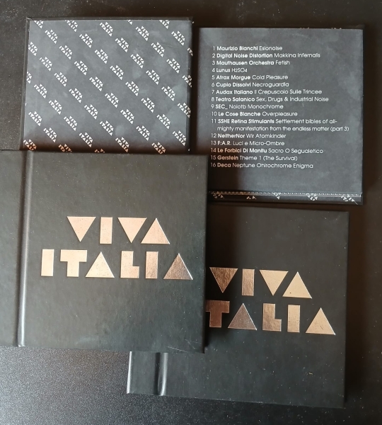 Each CD contains about 80 minutes of music, the total duration of the program is more than five hours! TEATRO SATANICO, LUNUS, SSHE Retina Stimulants, The Tapes, Sparkle in Grey & Nicola Ratti, Stefano Pilia, Andrea Belfi, Massimo Carozzi, Fabio Orsi, F.ormal L.ogic D.ecay, Daniele Brusaschetto, Gaetano Cappella & Enrico Coniglio, Marcello Fraioli, Stefano Barban, Malato, Alessandro Bosetti, DsorDNE, Alessandro Geo, Murder Corporation, Andrea Marutti, Microloop, Claudio Rocchetti, Sostrah Tinnitus and Wuornos Aileen.Lyke Wake, F:A.R., Gerstein, Giancarlo Toniutti, Tasaday, Luca Miti & Francesco Michi, Mauthausen Orchestra, Raffaele Serra, Mauro Teho Teardo, Riccardo Sinigaglia, Enrico Piva, Maurizio Bianchi, Le Forbici Di Manitù, Capricorni Pneumatici, Cupio Dissolvi, Deca, Atrax Morgue, Paolo Veneziani, Regivar, AlioDie & Opium, Runes Order, T.A.C., Bad Sector, Tingis, Cold Cluster, Audax Italiano, Digital Noise Distortion, Fantasmagramma, NeitherNor, Le Cose Bianche...